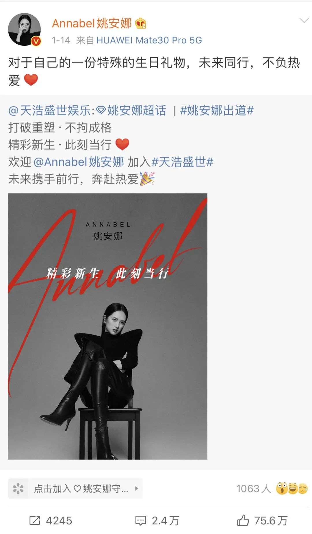 1月14日,是姚安娜23岁生日,也是她宣布出道的日子,出道后的姚安娜迅速进入艺人的角色中,马不停蹄地拍摄了时尚杂志、发布新歌,当起代言人。(更多相关内容查看tech星球往期文章《华为「二公主」出道,谁来捧红姚安娜?》)