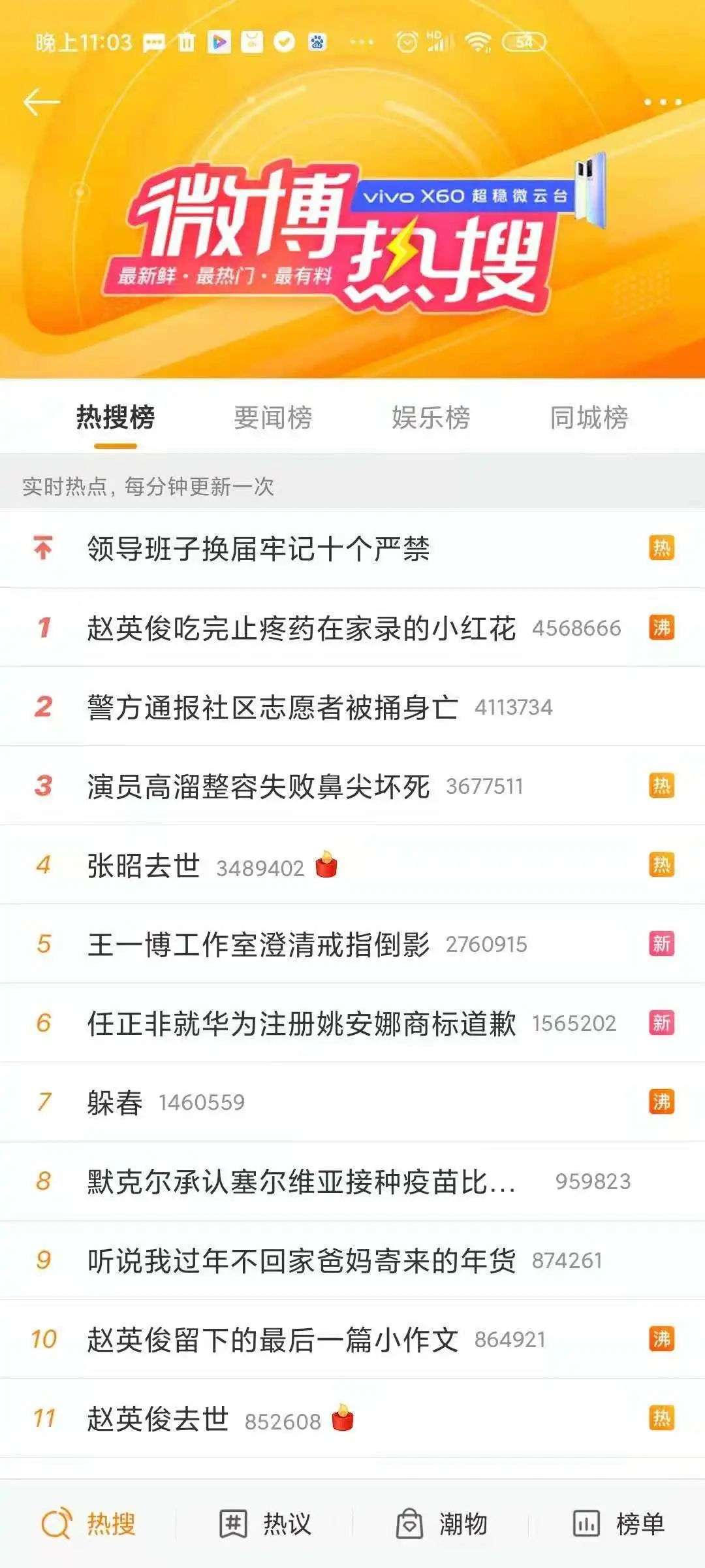 #任正非就华为注册姚安娜商标道歉#,一度登上微博热搜榜第六