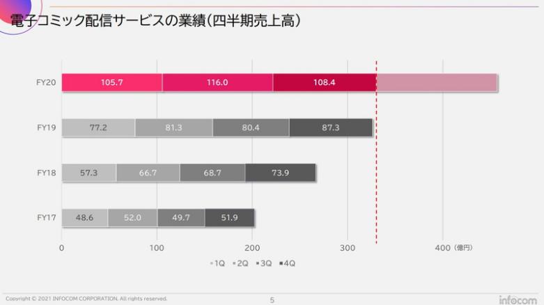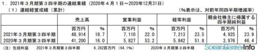 日本大型IT公司Infocom corporation于1月27日发布了第3季度综合决算财报(2020年4-12月),销售额、利润均实现两位数增长。主力军电子漫画网站“めちゃコミック”持续成长。