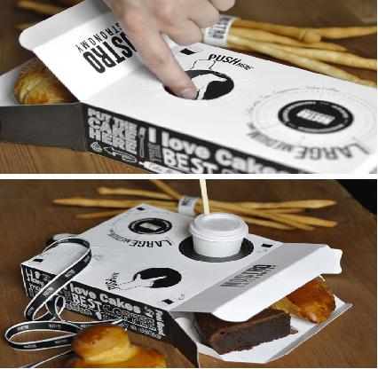 而有的设计在趣味之外,还很实用,比如这个零食盒加上了存放迷你咖啡杯的隔层,只需按压push按钮,就会有咖啡杯弹出。而人们在反复按压push按钮的时候,无意中就强化了对产品、乃至品牌的印象,