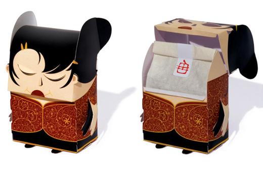 有着淡淡幽香的茶包就藏在这个穿着中式衣衫的小女孩的身体里,这一设计也是趣味横生。让人用完茶包也不舍得把包装盒丢弃。