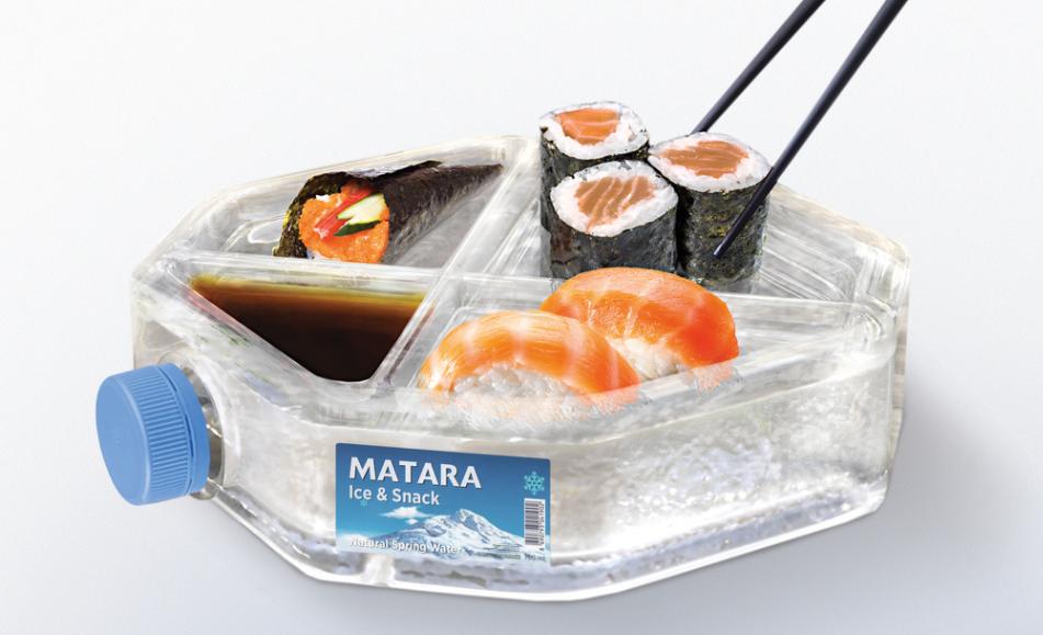 比如这款Matara矿泉水的多边形扁平瓶身设计,让它看起来像西部牛仔随身携带的水壶。