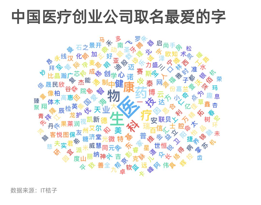 医疗行业的公司取名基本围绕「健康」、「妙手」、「丰盛」、「杏林」、「爱」、「泰」、「诺」、「和」这些满怀美好愿望与医学典故相关的字。