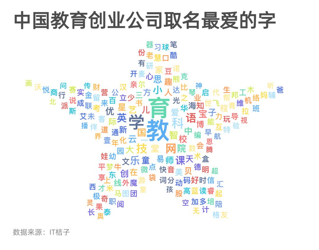 新一代的教育行业公司诞生在互联网时代,除了「教」、「育」、「学」这几个行业本质属性词之外,「网」的高频出现代表了教育创业从线下到线上转移的过程。