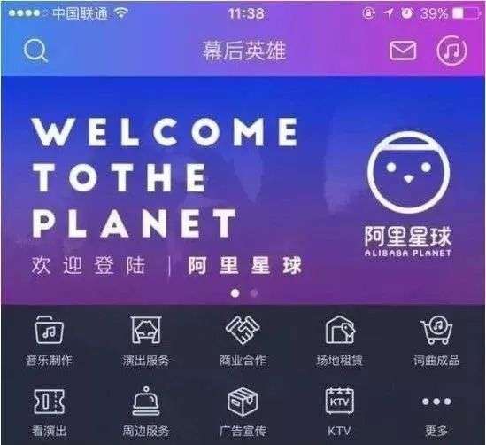 改版后的阿里星球将音乐产业与电商模式结合,APP集音乐播放、粉丝社交、视频直播、交易体系于一体,满足从听众、音乐人、词曲作者、经纪公司、演出机构等各方面的需求。