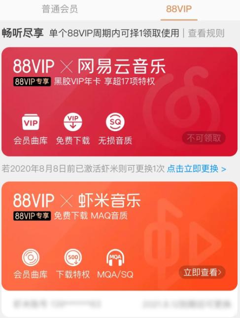 8 月,阿里的88VIP在音乐服务中为用户提供虾米音乐和网易云音乐二选一的机会,这是阿里系以外的产品第一次进入88VIP体系。