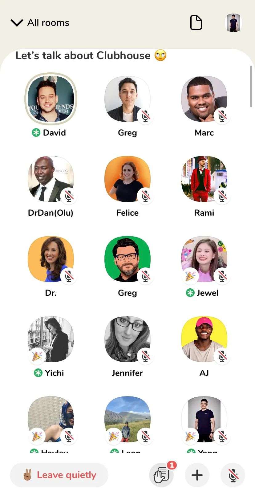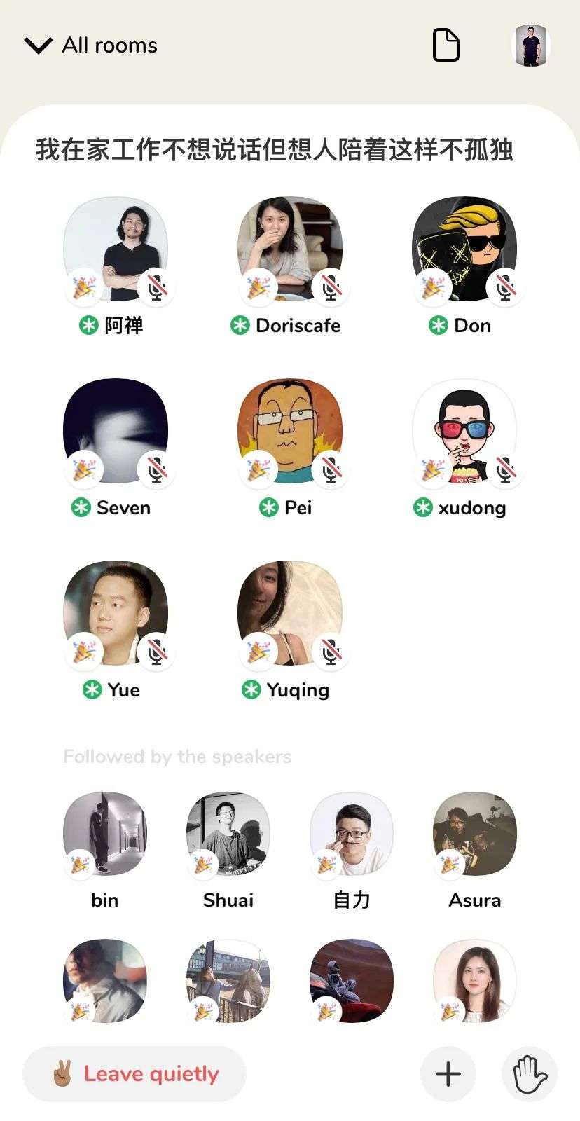 进入Clubhouse的播房就像你走进一个小组讨论会的房间,你可以选择离开,但是如果话题吸引你,并且你已经参与了谈话,你也不会轻易离开,那是不礼貌的。