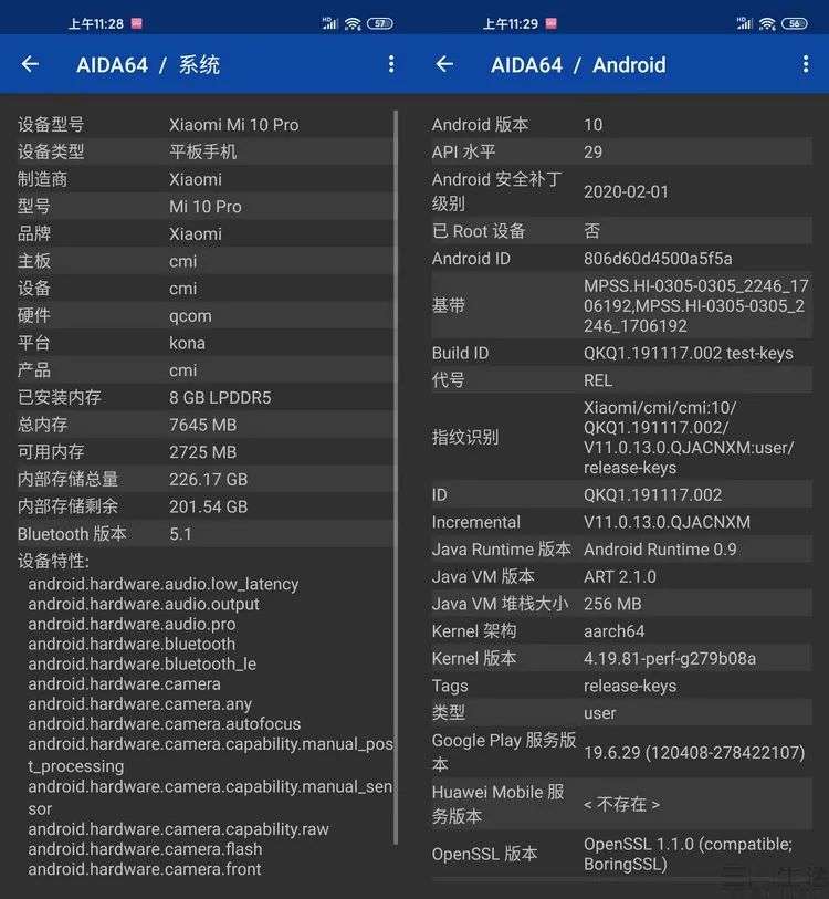 可以看到,小米10 Pro是内置谷歌GMS服务包的