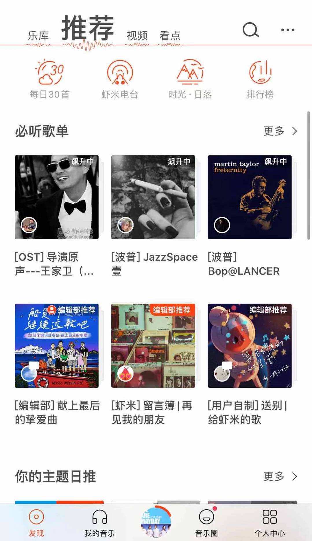 2月4日,虾米用户创建的歌单在首页推荐