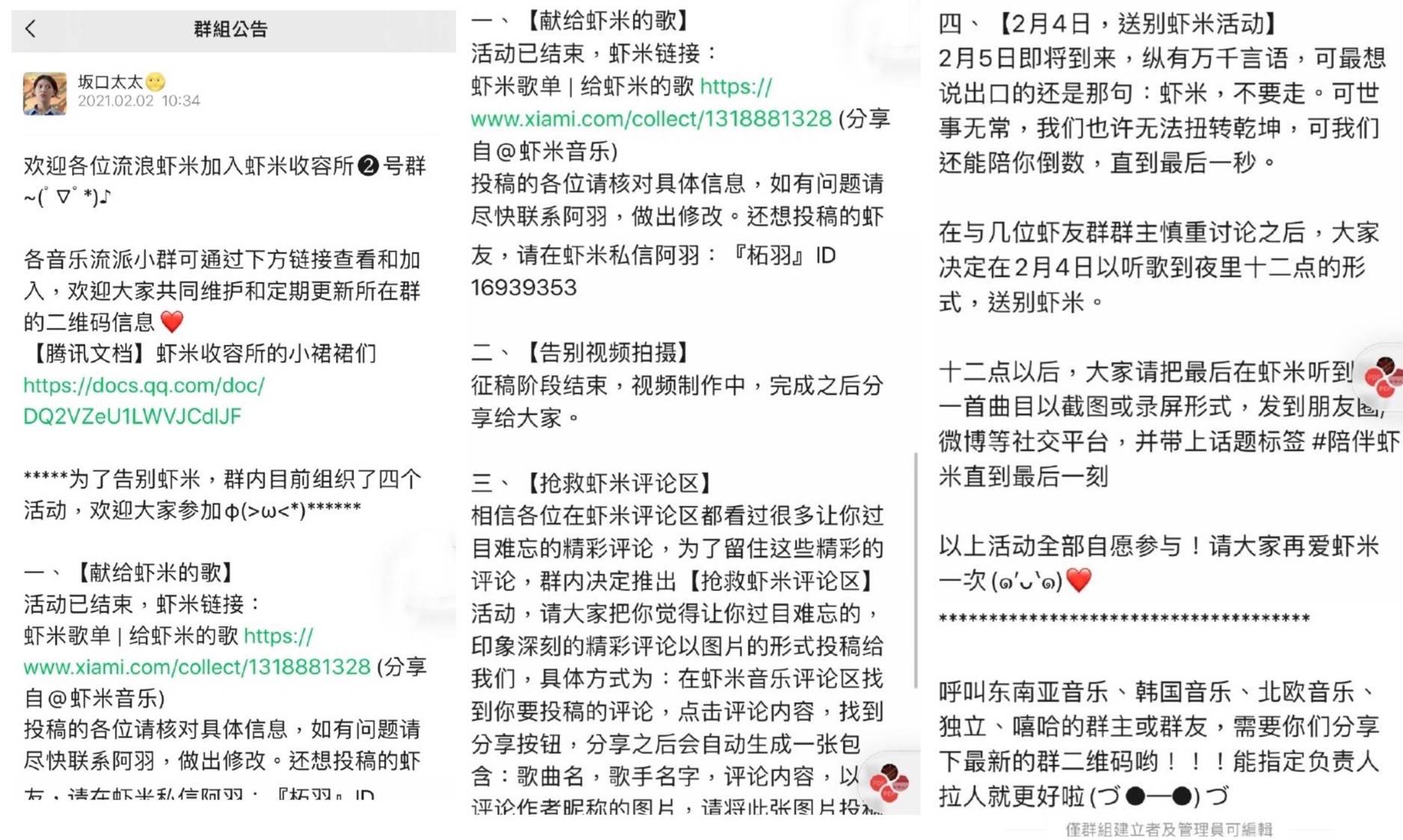 为了保留虾米的一切,群里的管理人员往往忙碌到凌晨。