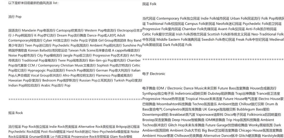 虾米上的音乐流派,图源知乎用户CFanKing