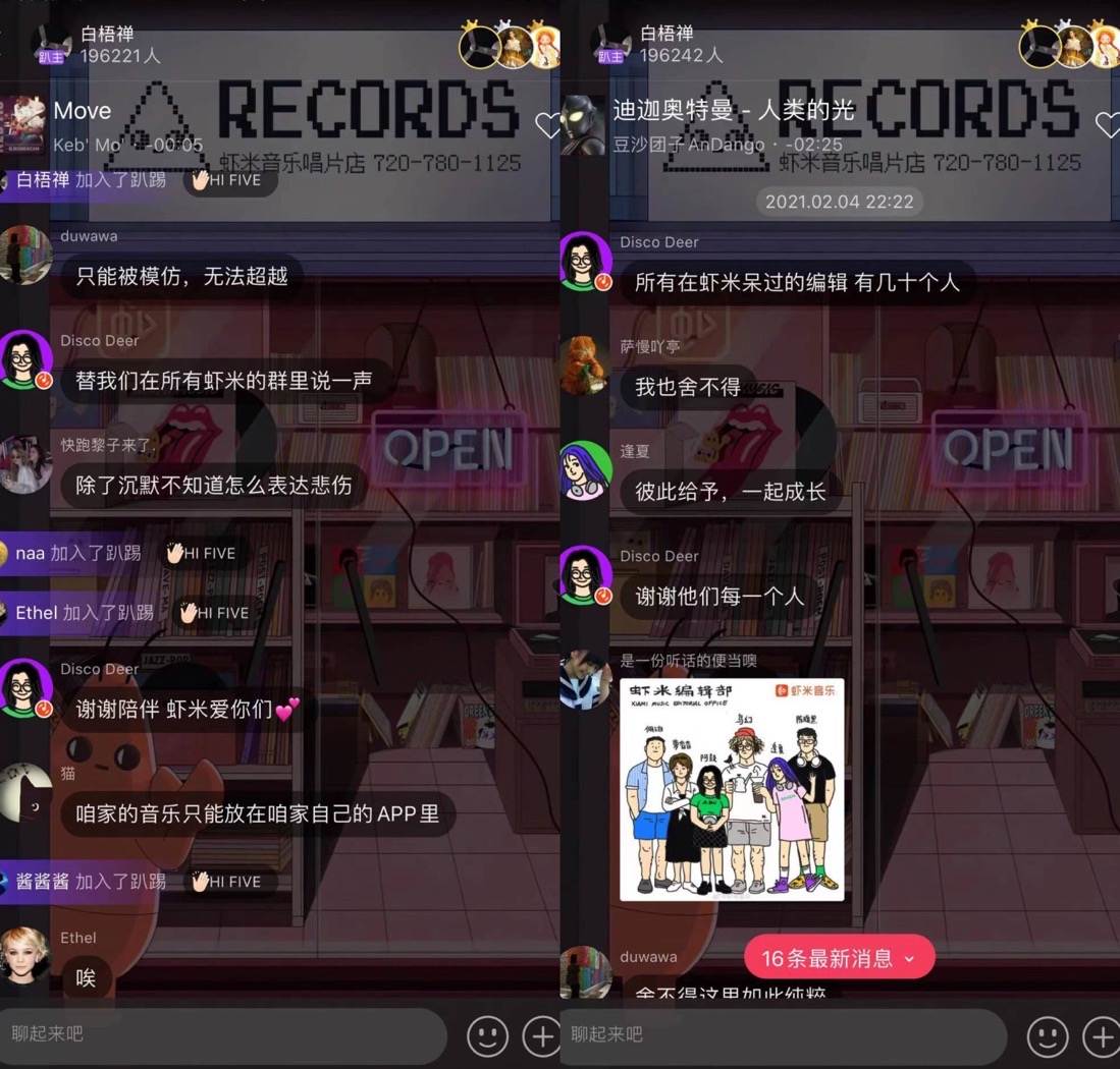 无数“虾米”在等最后的时刻,一个名为“虾米星球的最后一夜”的音乐直播间,整晚没有停止过播放音乐。