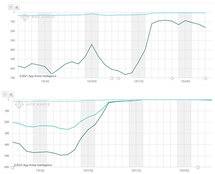 Google Play(下)免费榜的排名变化丨数据来源:App Annie