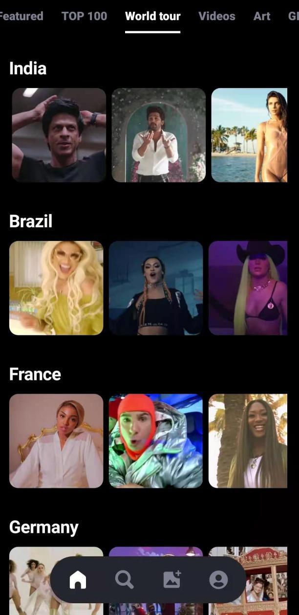 此外,REFACE 还针对几个热门市场做了比较精准的引流,在新增的 World Tour 二级标签下,分类出了几个国家的选项,每个选项下则是在不同国家拥有大量流量的特定 IP 形象,给用户提供了更多的内容选项和跨文化交流体验,这其实和 Tinder 的护照功能有类似之处。