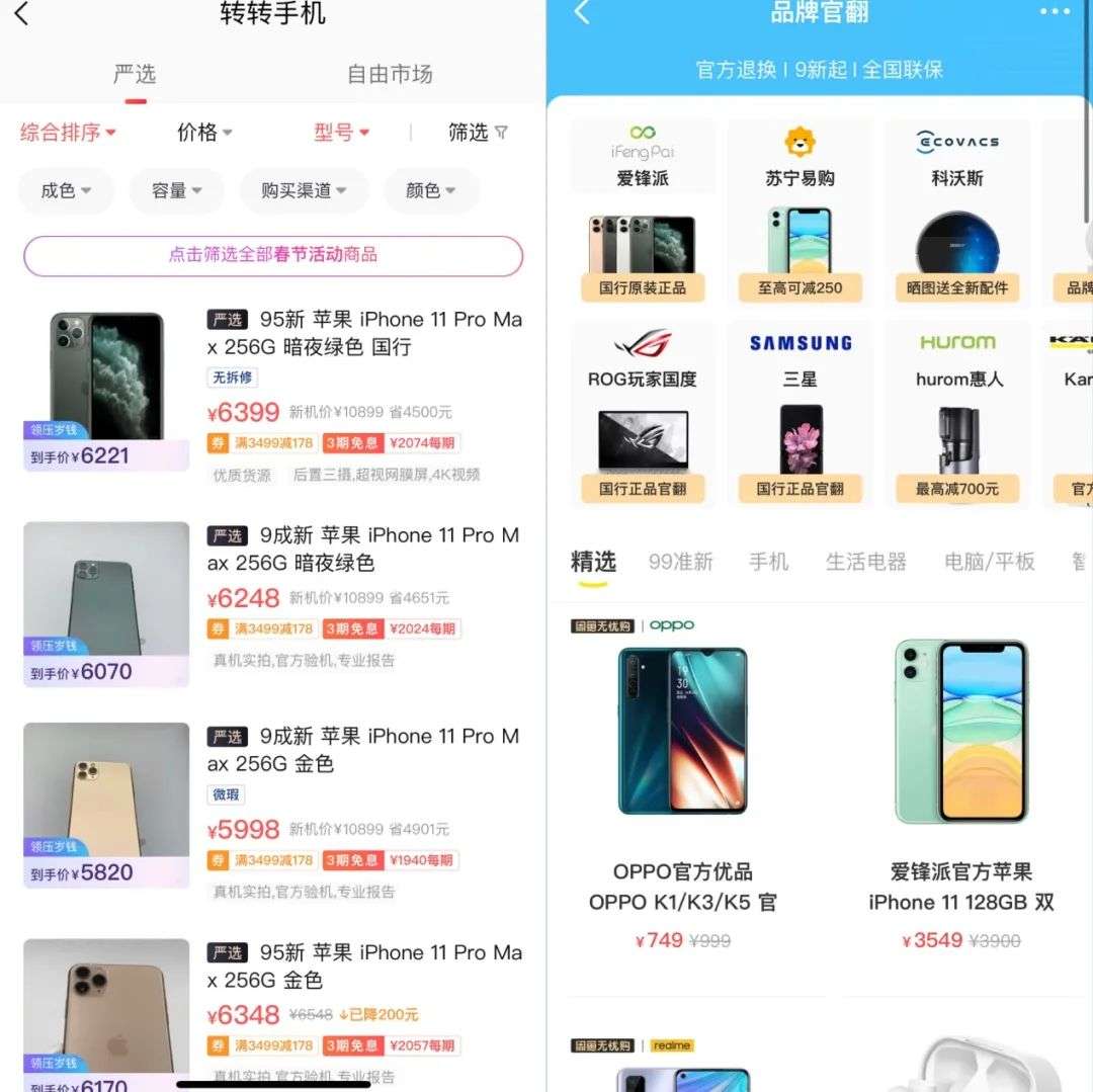 当越来越多的二手手机流向官方渠道,也意味着二手市场标准化的进一步确立,站在鄙视链上游的官翻机,也成了二手平台标准化的背书,而电商平台就是其中最有力的争夺者。