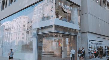 2019年7月华为马德里旗舰店开业,当地消费者排队的盛况