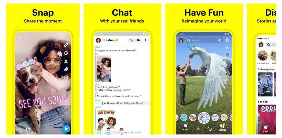 Snap、INS是「社交强于内容」,偏熟人网络,带有强烈的「自我形象维护」与「塑造」的目的,snapchat的理念是让朋友通过我的眼睛看世界;