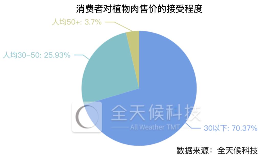 调研结果显示,96.3% 的用户对植物肉的价格接受门槛控制在 50 元以内