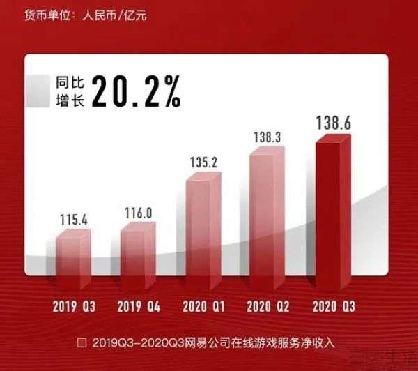 然而今时不同往日,网易的“擎天白玉柱,架海紫金梁”——游戏业务已经遭受了巨大的挑战。在网易去年11月发布的2020年第三季度财报中曾有这样的表述,网易在线游戏服务净营收为138.620亿元,上一季度和去年同期分别为138.283亿元和115.348亿元,同比增长20.2%,增速减缓。对于网易来说,持作为核心的游戏业务虽然在今年前三季度都保持了收入增长,但每个季度的增幅却都在收窄。