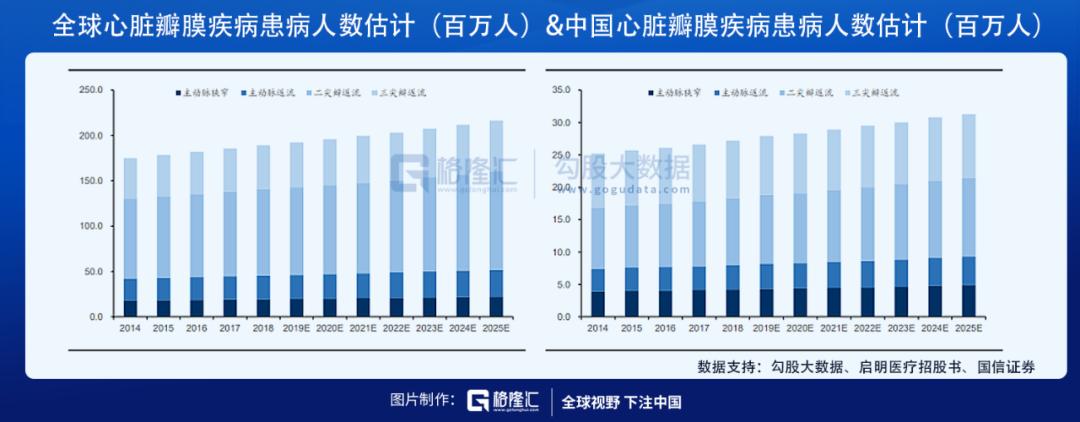 据测算,2018年全球分别有1930、2600万人患有主动脉狭窄或主动脉反流,中国的患病人数分别为420万、380万。随着人口老龄化的加剧,主动脉狭窄或反流的患者呈上升趋势。