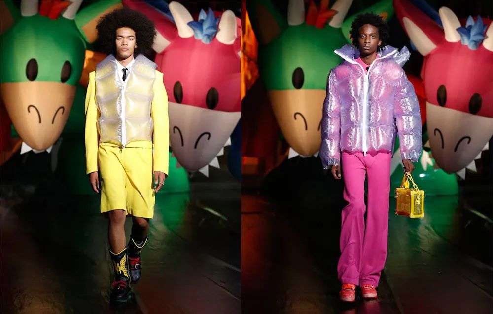 这两件单品的设计灵感,来自于去年 LV 在上海举办大秀时,用来装点秀场和模特的大型充气玩偶。