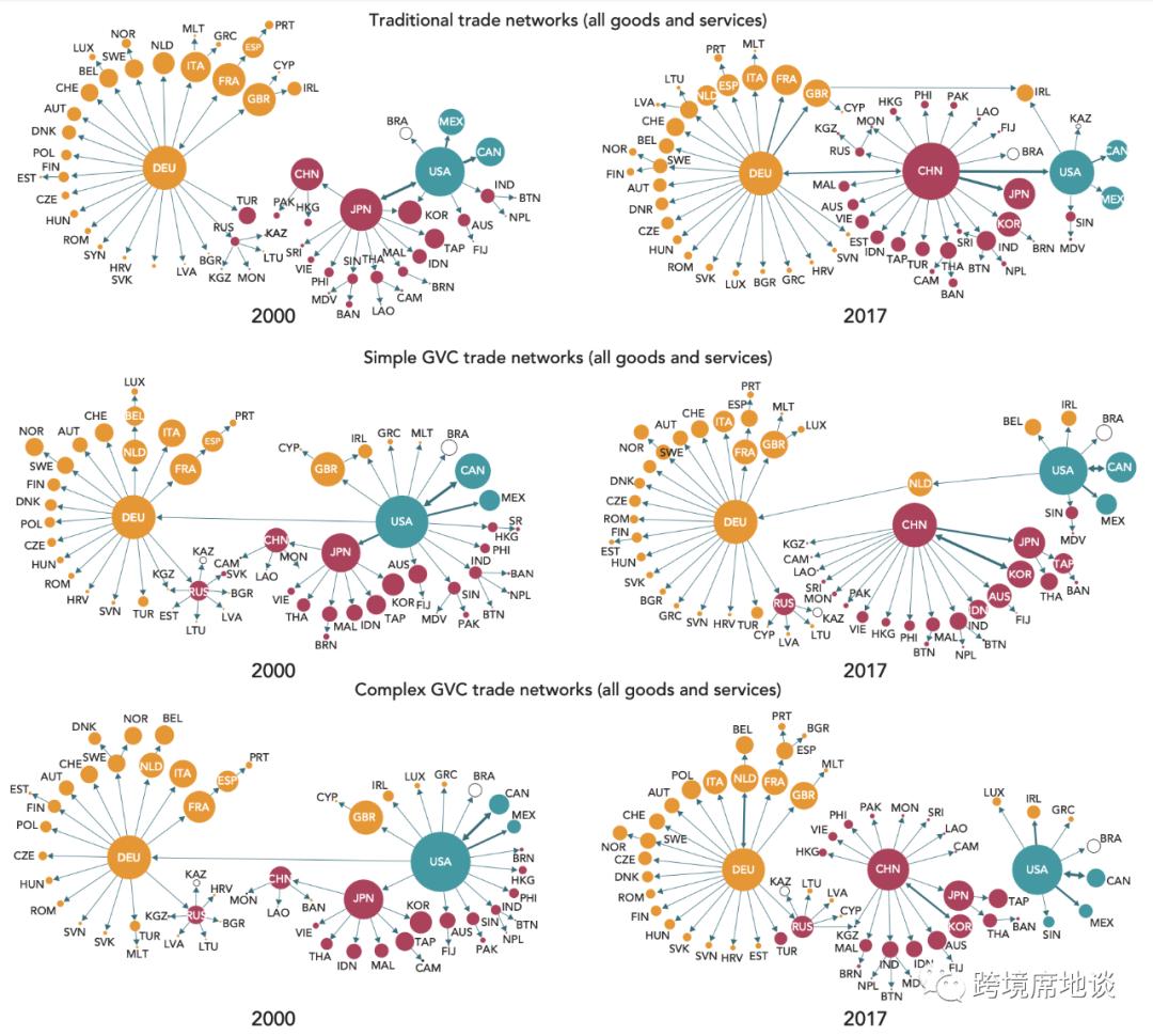 WTO 在2019年出版的《GLOBAL VALUE CHAIN DEVELOPMENT REPORT 2019》中提到,在中国加入 WTO 后,中国与其他中心国、以及几乎所有亚洲国家均建立了更加密切的贸易联系。