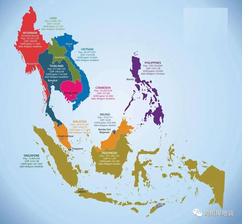 以下我们根据社会基础环境、经济实力环境、电商基础设施和与中国的跨境商贸环境四方面来综合评估这个区域,这其中以新加坡、马来西亚、泰国、印尼、越南和菲律宾六国为核心。