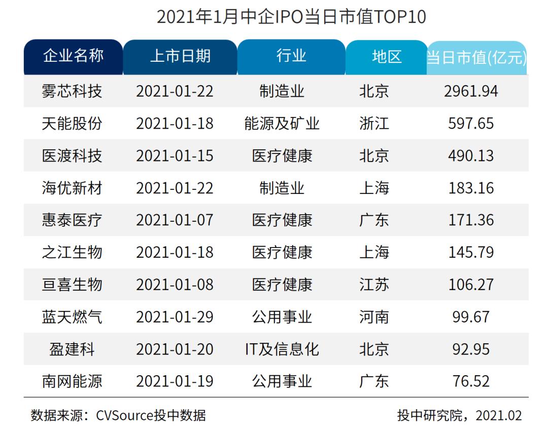 图1 2021年1月IPO概览