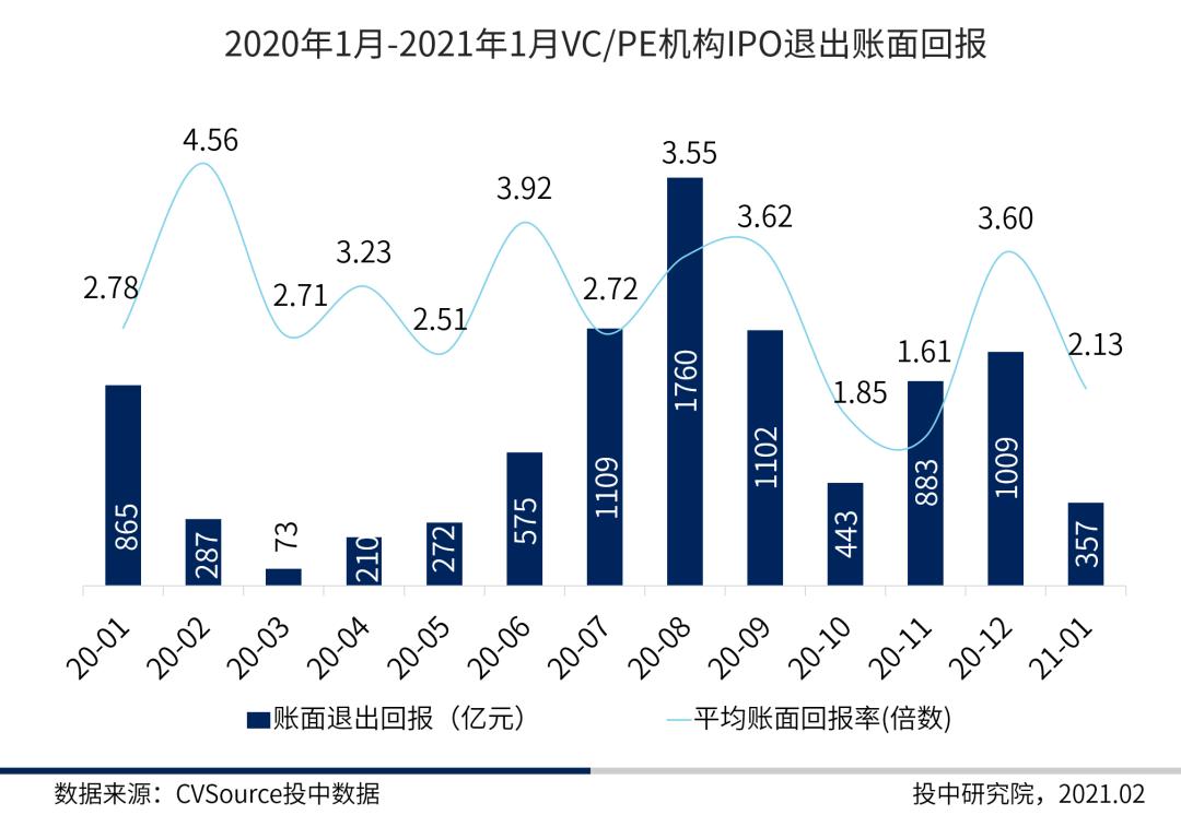 图6 2020年1月-2021年1月VC/PE机构IPO退出账面回报