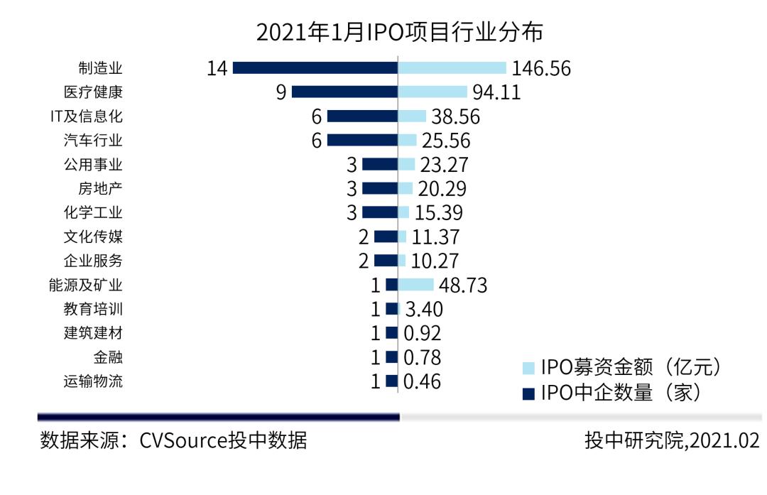 图7 2021年1月IPO项目行业分布