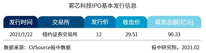 募资规模前十大IPO项目均在9亿元以上,占1月整体募资61%。雾芯科技当日市值近3000亿元,位居榜首