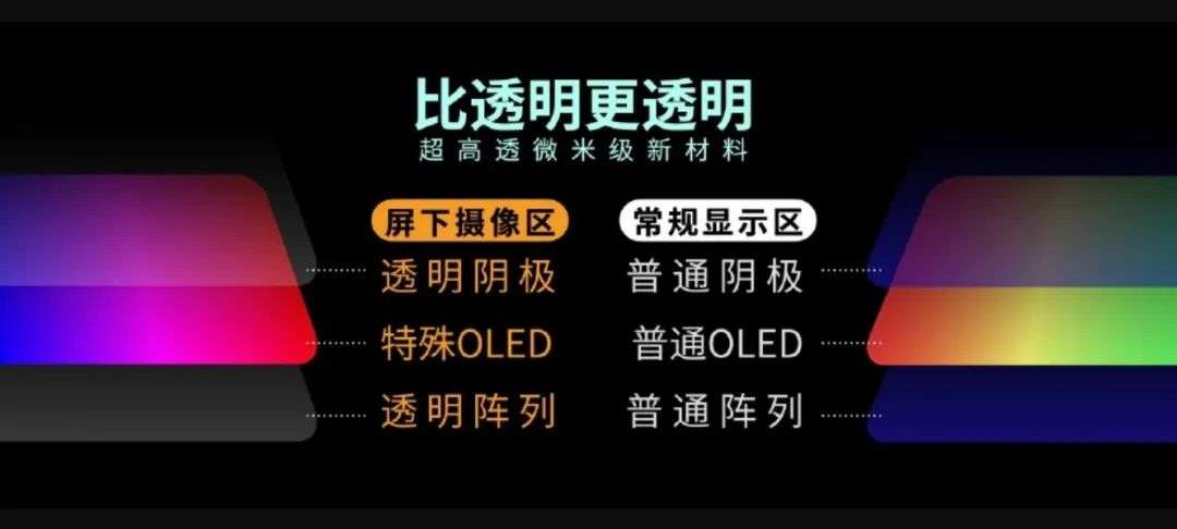 vivo是选择了一种在屏下摄像区使用PMOLED屏幕,其他区域使用正常屏幕材质,PMOLED材料由于结构更薄,透光率也会相对高一些。魅族则是直接将石墨烯材料用在了屏下摄像区,然而显示效果就无法得到保证了。