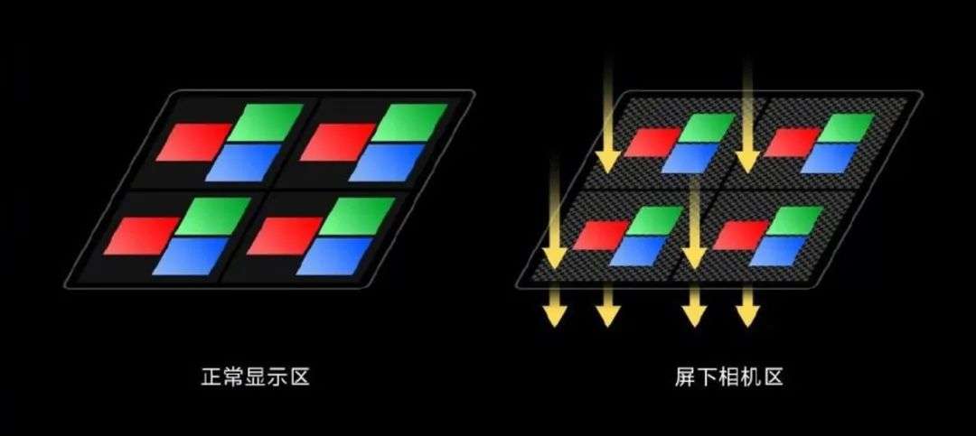 如果从屏幕的阴阳极入手,采用透明阴极、阳极材料,则屏幕的亮度、颜色表现都会因此受到影响。如果减少前置摄像头区域的屏幕像素数量和电路排布,则屏幕分辨率就会下降,屏幕的“纱窗感”就会增强,引起观感的不适。