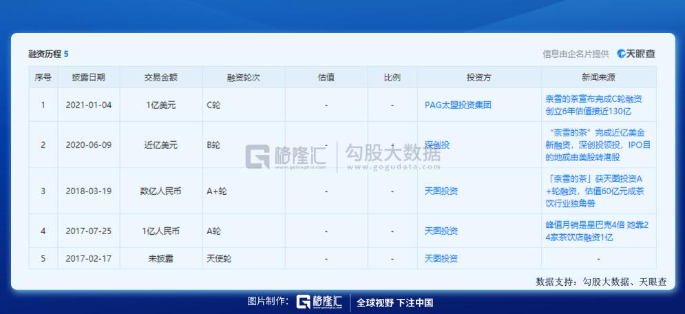 自2016年开始,喜茶、奈雪の茶、乐乐茶等已陆续获得多次融资。今年来,进入赛道的机构不仅有天图资本、高瓴资本、IDG、红杉资本等“熟面孔”,还涌现了不少新面孔——2020年,雷军旗下的顺为资本首次出手新茶饮品牌7分甜,碧桂园创投则领投了茶包品牌茶里CHALI。