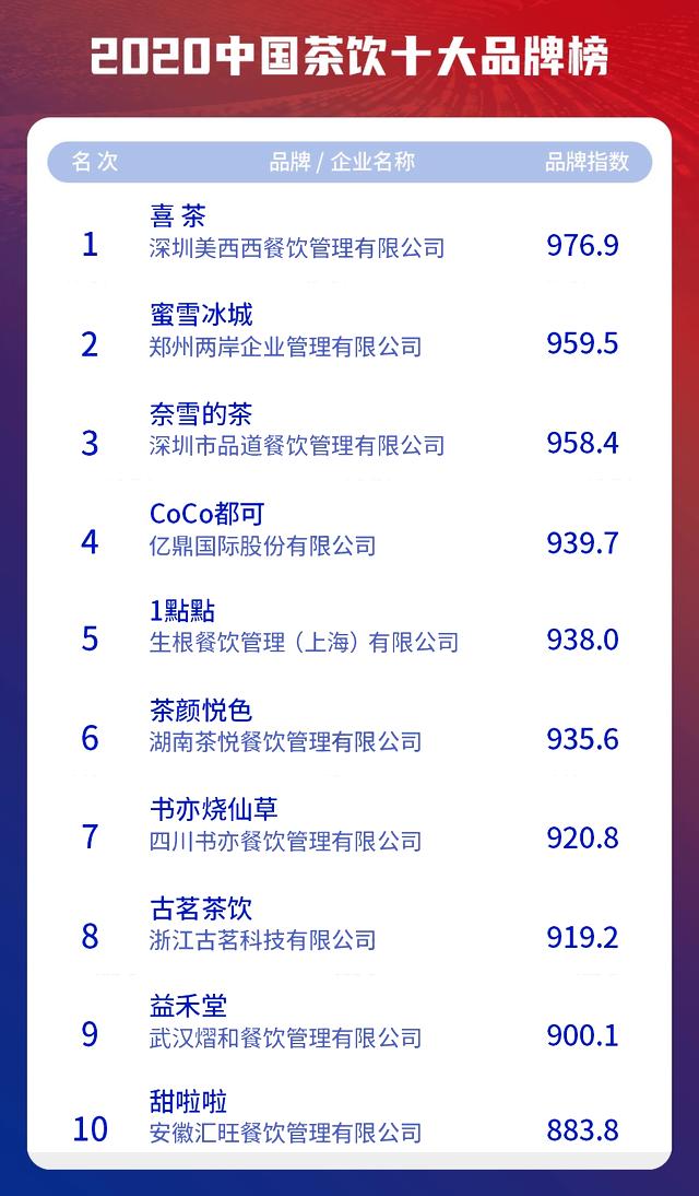 在2020中国茶饮十大品牌榜上,蜜雪冰城成为了与喜茶、奈雪并肩的前三大品牌。而其能成功的秘诀,在于它巧妙的错位竞争战略。蜜雪冰城抛弃了“格调”、“品味”等产品附加价值,通过低价打造了独一无二的市场。叠加加盟店的病毒式扩张,让它成为了中国新式茶饮中第一个突破10000家的茶饮品牌,2019年营收已高达65亿元。