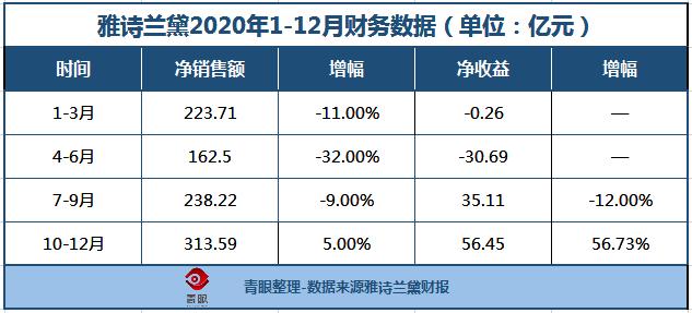 近日,雅诗兰黛公布2021财年第二季度(2020年9-12月)业绩报告,期内,该集团录得净销售额313.59亿元,同比增长5%,净利润录得56.45亿元,同比增长56.73%。