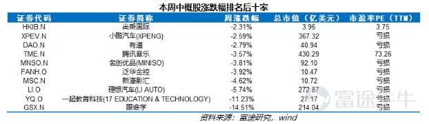 本周中概股等权重指数上涨7.92%,除特定公司出现事件驱动影响股价外,其余公司涨多跌少,这与市场资金高度关注港美股相关。