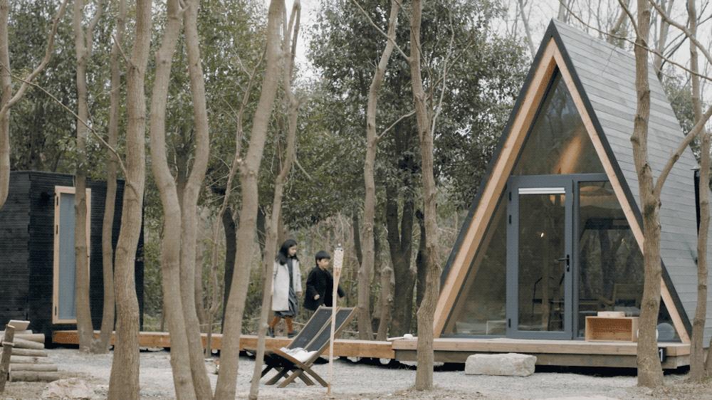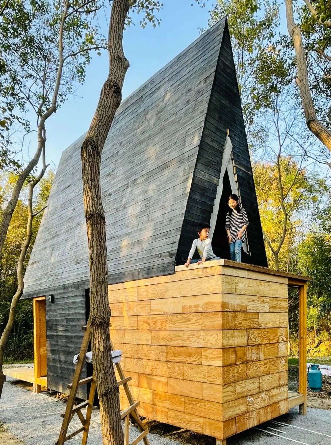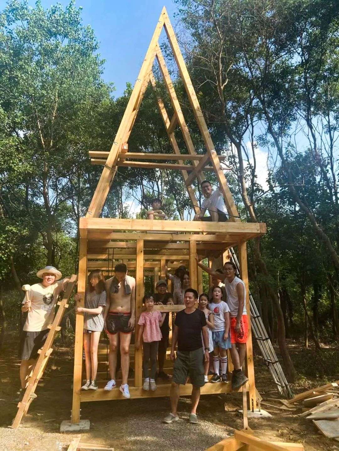 武汉解封,初夏,两家人加上一群好朋友,造了第一批的三栋小木屋:小飞象、方尖碑、大三角。
