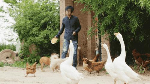 养鸡是因为想吃鸡蛋,养的鹅和狗就充当了外在的防护墙。最早的那只鹅叫幼婷,后来觉得一只有点太孤单了,又买了两只小鹅。