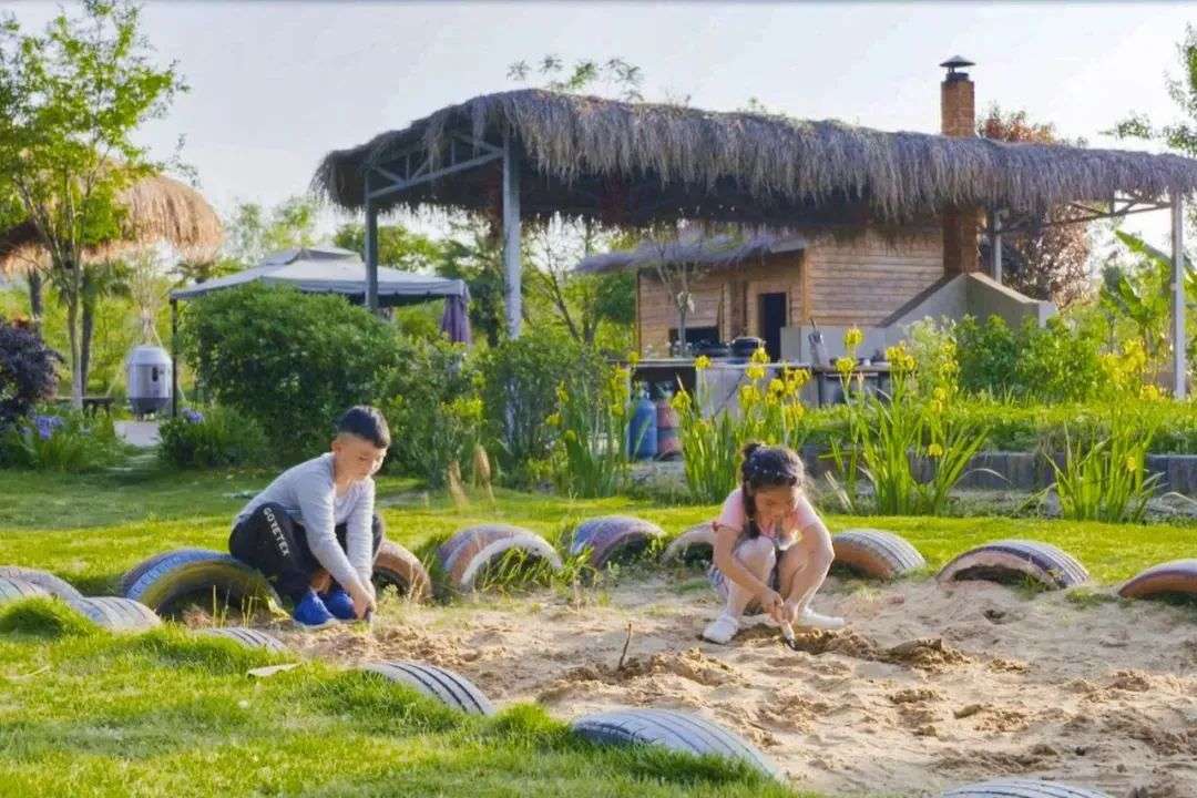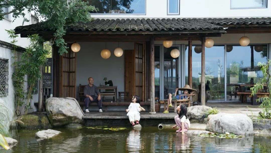2016年,邢永恒租下了江苏昆山的四个宅基地,最初只想作为民宿经营。没想到光建造就花了三年的时间,又赶上疫情。夫妻俩和三个孩子,也从上海搬到了乡村生活。