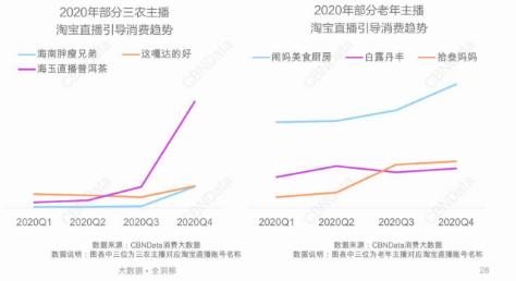 2020年部分三农主播、老年主播淘宝直播引导消费趋势。图片来源:CBNData