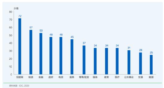 《报告》显示,全球计算力水平TOP5行业分别是互联网、制造、金融、政府和电信。