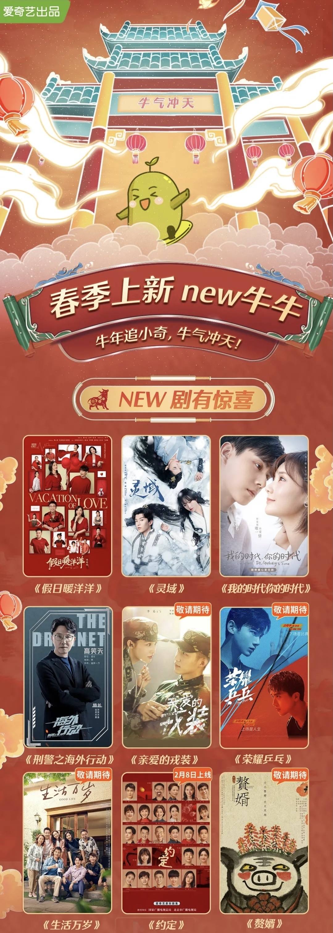 爱奇艺在类型选择上偏重自制现实题材,计划在《假日暖洋洋》《刑警之海外行动》《我的时代,你的时代》《约定》的基础上,再独播上线《亲爱的戎装》《荣耀乒乓》《生活万岁》《赘婿》。