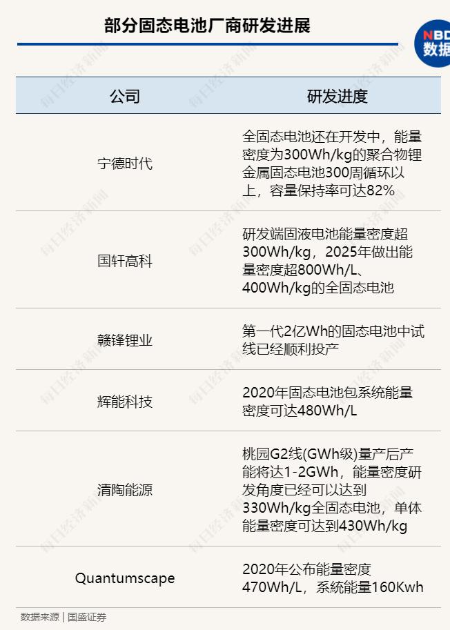 目前各厂商研发的固态电池能量密度已接近400Wh/kg