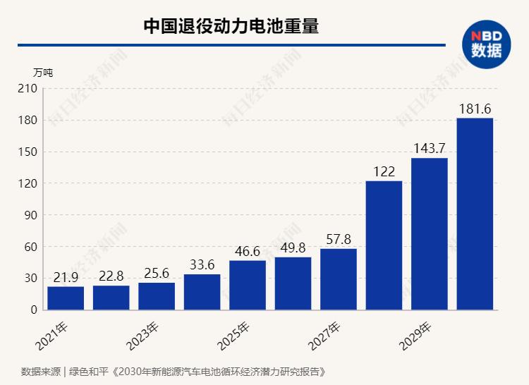 上述报告数据显示,2021~2030年,中国退役的动力电池将达到708GWh,将这些电池有效地梯次利用将比制造等量的新电池减少近3342万吨碳排放。