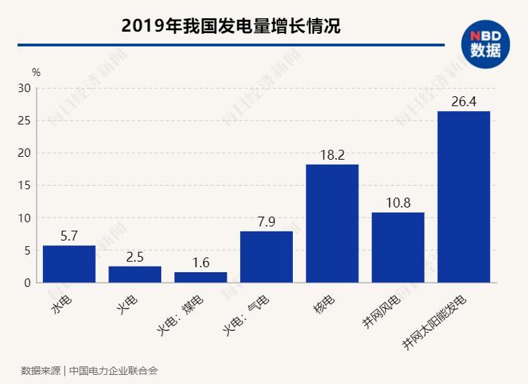 根据中国电力企业联合会发布的《中国电力行业年度发展报告2020》,2019年,我国全口径发电量为73266亿千瓦时,比上年增长4.7%。但从分项数据看,煤电发电量增速最低。