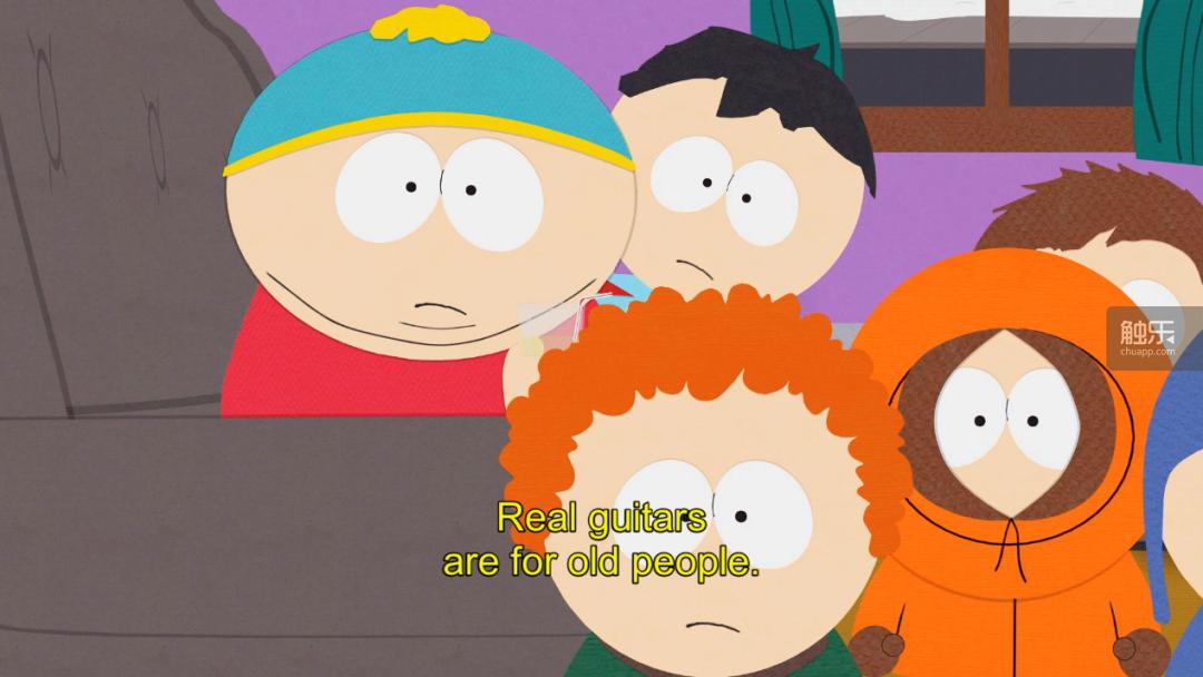 《南方公园》第11季首播于2007年。十几年过去,连《吉他英雄》都变成了“适合老不死的玩的东西”了。系列的最后一款作品是2015年的《吉他英雄:现场》,我们最后一次看到它的新闻是2019年初,动视暴雪决定削减版权费的开销,把《吉他英雄:现场》的曲库从500首削减到了42首。在此之后,他们又开启了退款通道,算是给“吉他英雄”系列判了死刑。