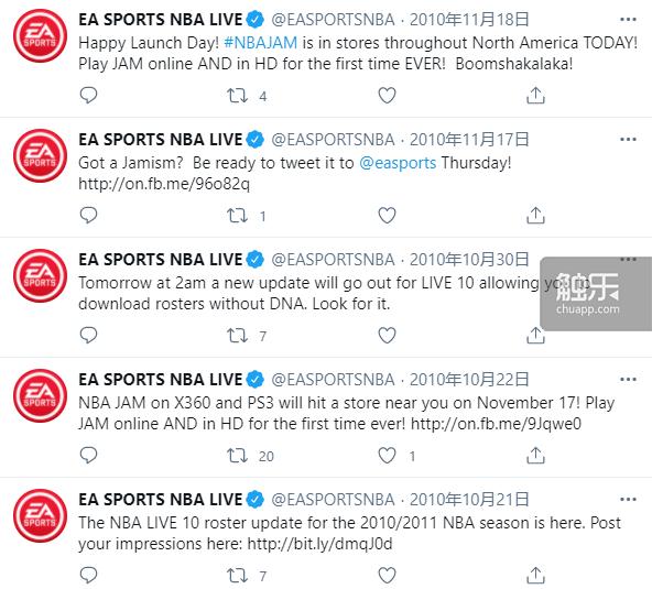 “NBA Live”系列的官推“@EASPORTSNBA”开设于2009年6月。最初目的是为了给《NBA Live 10》做宣传——那是系列被“NBA 2K”超越后的第一年,EA还憋着一股劲想把市场夺回来,它们甚至请来了原“NBA 2K”系列首席设计师Mike Wang。封面球星则是当年刚刚打进总决赛,炙手可热的“魔兽”德怀特·霍华德。