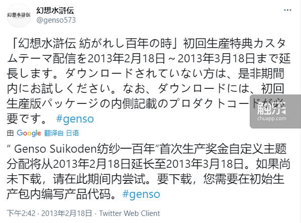 “幻想水浒传”官推的最后一条推文