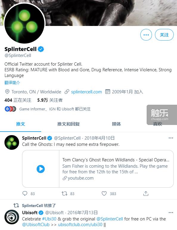 “细胞分裂”:@SplinterCell,5年,5.9万关注者